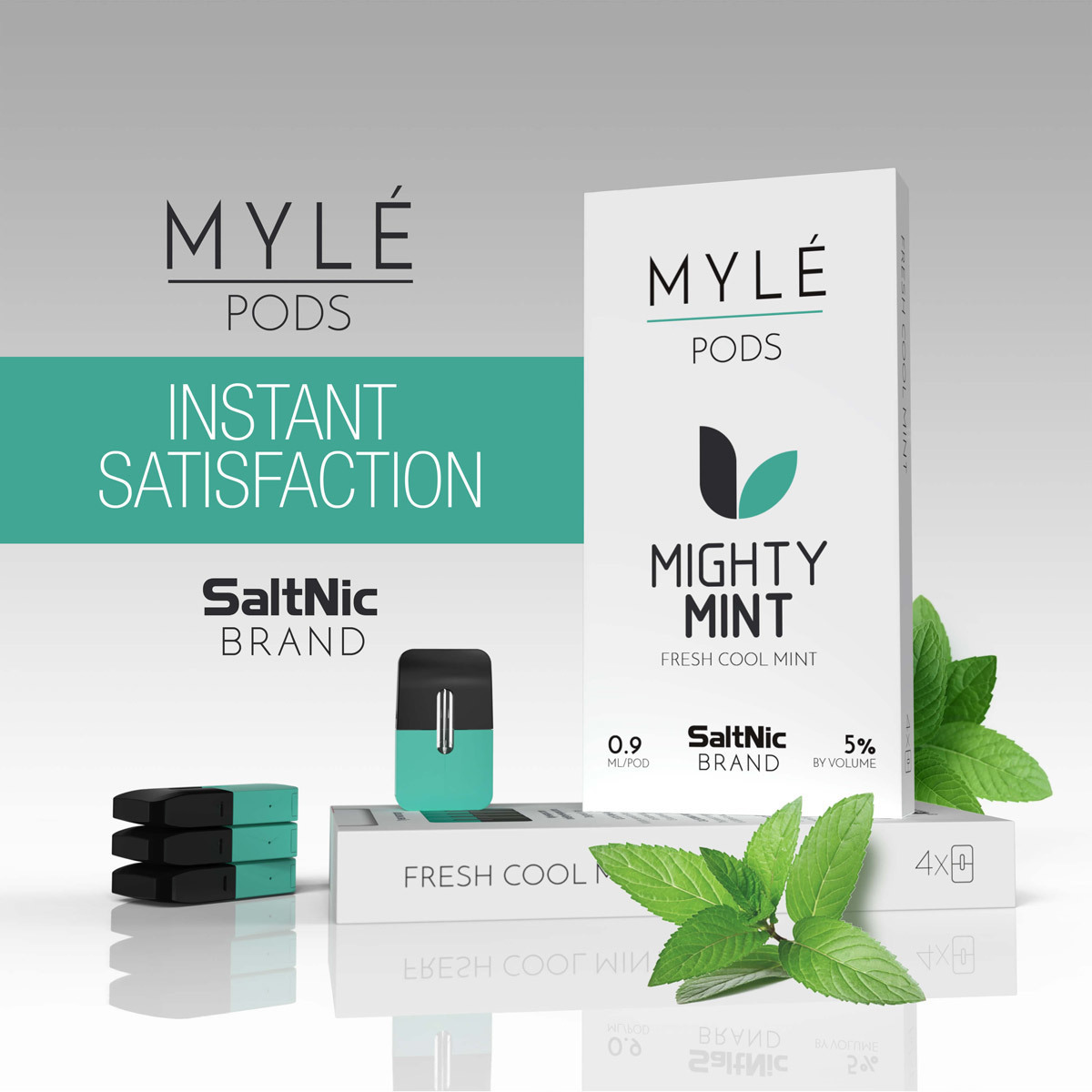 Каждый MYLE Pod содержит 0.9мл е-жидкости с 5% (50мг) никотина SaltNic, приблизительно на 240 затяжек.