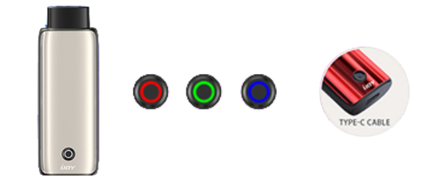iJoy Neptune имеет встроенный аккумулятор емкостью 650 мАч. Этой мощности абсолютно достаточно с головой для сопротивления в 1.2 Ом. Зарядка Type-C, заряжается устройство за 30 минут. С помощью кнопки, расположенной на корпусе, пользователь может изменять напряжение в трех вариантах, что сопровождается индикацией на этой же кнопке: