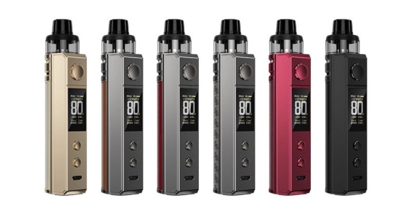 Внешне под Drag H80S похож на своих предшественников, однако претерпел некоторые изменения, к слову девайс меньше на 15%, чем DRAG X. Формат становится более компактным, а возможности платы и вкусовые данные при этом – лучше. Выполнен DRAG H80S Kit в форме цилиндра, покрытого вставкой из эко-кожи с выгравированным названием линейки DRAG. Совмещается кожаная часть с деталью, которая выполнена из алюминиевого и цинкового сплава, и содержит в себе все самое важное – плату, большой информативный дисплей, кнопку Fire, кнопки регулировки мощности и порт для зарядки. Между двумя частями вставляется аккумулятор. Дизайнеры Voopoo представили новые расцветки в DRAG серии: Plum Red, Gray Carbon Fiber, Red, Brown, Black и Golden.