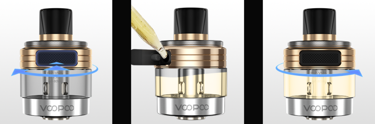 А вот что заметно изменилось, так это картридж. Обновленный картридж PNP-X напоминает картридж TPP-X, но совместим с испарителями PnP серии. Ползунок в верхней части мода регулирует обдув, а заправка стала намного удобнее и находится в верхне части картирджа а не снизу как было раньше. Объем картриджа 5мл.