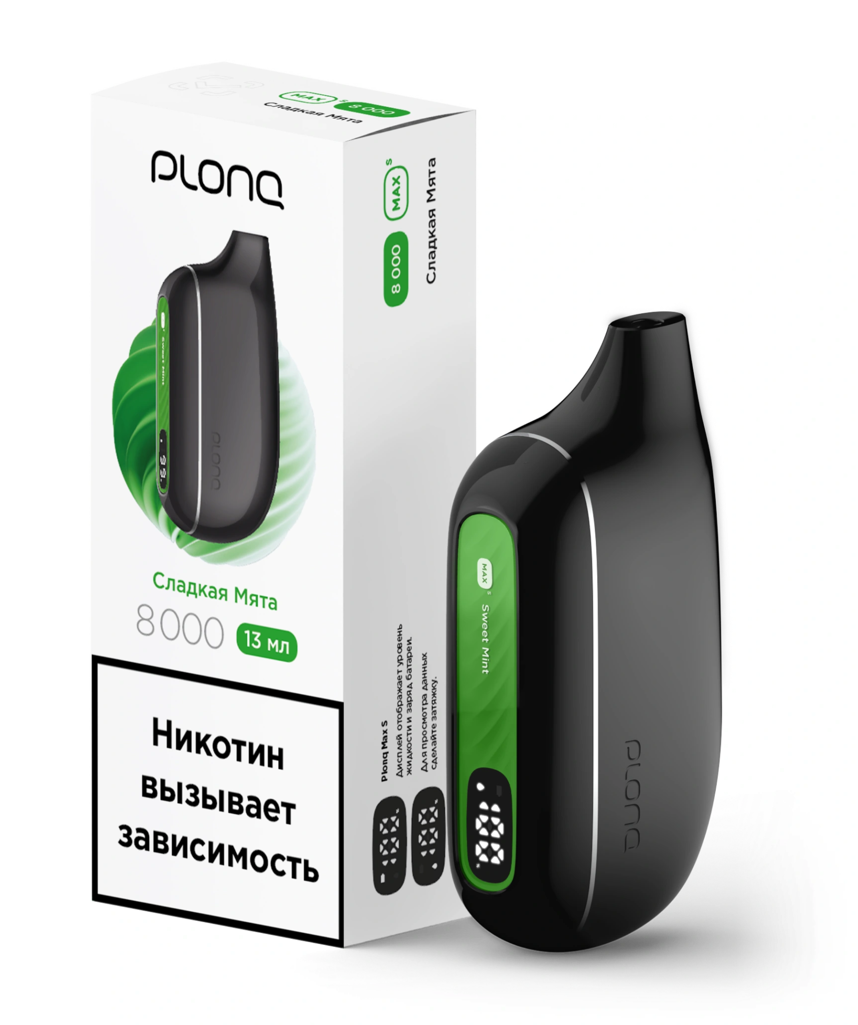 Одноразовый Pod Plonq Max Smart - Сладкая Мята (8000 затяжек)