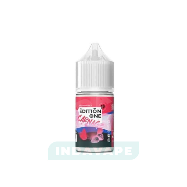 Солевая жидкость Edition One salt - Carnage (Клубничное молоко) в флаконе 30 мл. Узнаваемый и полюбившийся вкус клубничного молока во всех магазинах INDAVAPE.