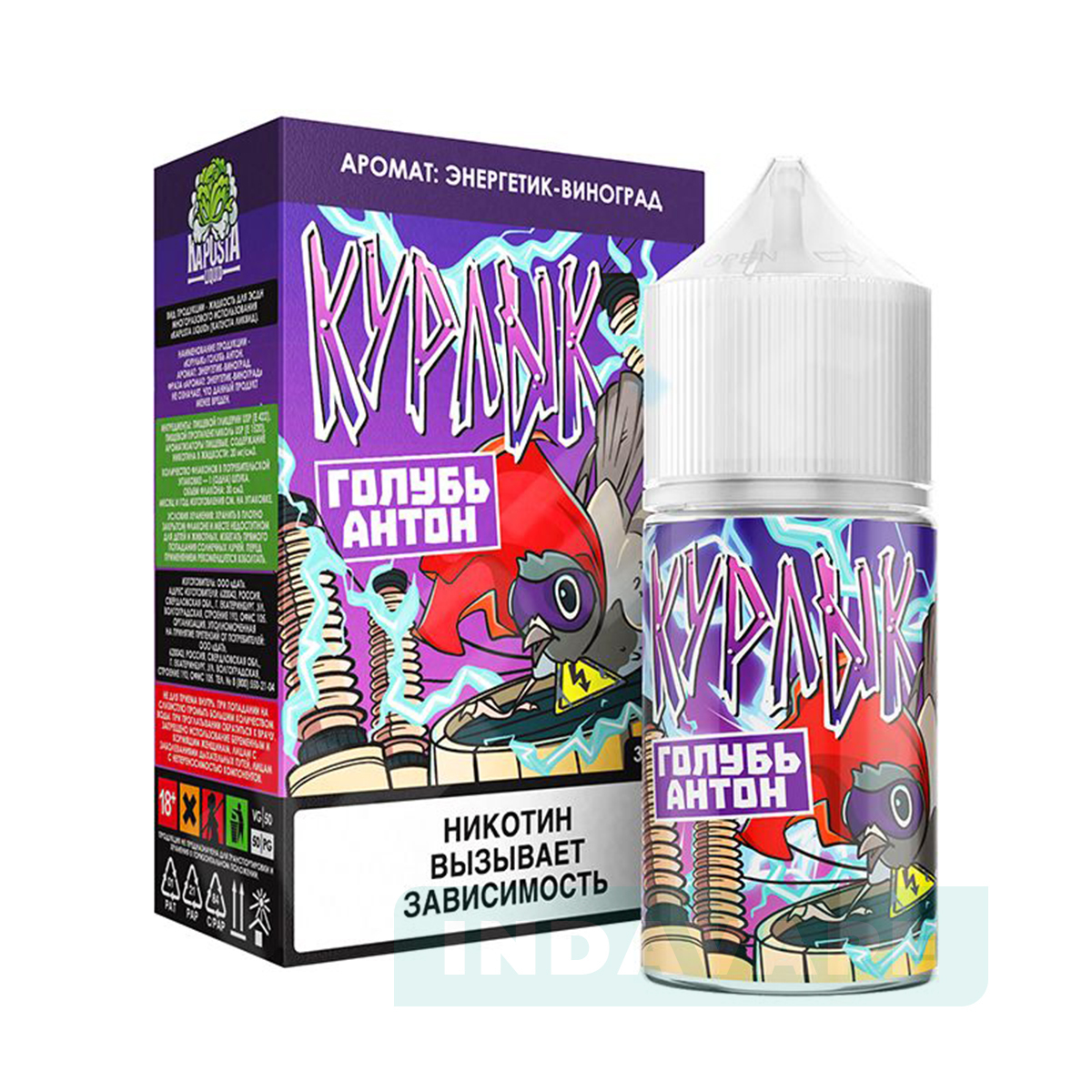 Солевая жидкость Курлык Salt - Голубь Антон(Виноградный энергетик) в флаконе 30 мл. Узнаваемый и полюбившийся вкус виноградного энергетика во всех магазинах INDAVAPE.
